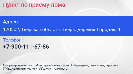 Пункт по приему лома по адресу 170502, Тверская область, Тверь, деревня Городня, 4 в дальнейшем Организация, размещена в следующих категориях: