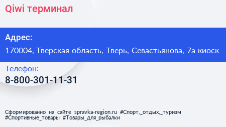 Qiwi, терминал по адресу 170004, Тверская область, Тверь, Севастьянова, 7а киоск в дальнейшем Организация, размещена в следующих категориях: