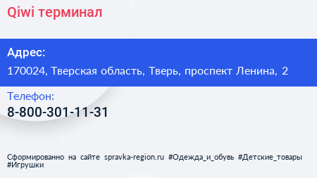 Qiwi, терминал по адресу 170024, Тверская область, Тверь, проспект Ленина, 2 в дальнейшем Организация, размещена в следующих категориях: