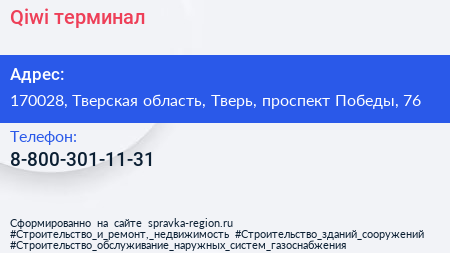 Qiwi, терминал по адресу 170028, Тверская область, Тверь, проспект Победы, 76 в дальнейшем Организация, размещена в следующих категориях: