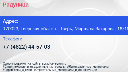 Радуница по адресу 170023, Тверская область, Тверь, Маршала Захарова, 18/18 в дальнейшем Организация, размещена в следующих категориях: