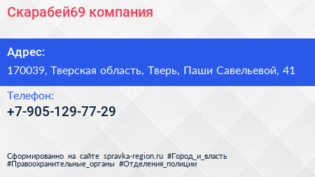 Скарабей69, компания по адресу 170039, Тверская область, Тверь, Паши Савельевой, 41 в дальнейшем Организация, размещена в следующих категориях: