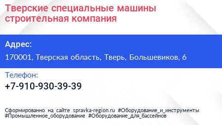 Тверские специальные машины, строительная компания по адресу 170001, Тверская область, Тверь, Большевиков, 6 в дальнейшем Организация, размещена в следующих категориях: