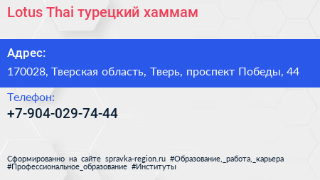 Lotus Thai, турецкий хаммам по адресу 170028, Тверская область, Тверь, проспект Победы, 44 в дальнейшем Организация, размещена в следующих категориях: