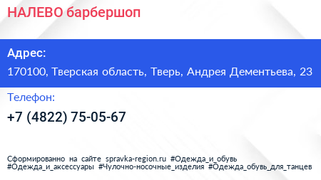 НАЛЕВО, барбершоп по адресу 170100, Тверская область, Тверь, Андрея Дементьева, 23 в дальнейшем Организация, размещена в следующих категориях: