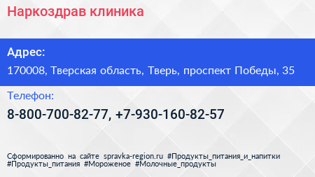Наркоздрав, клиника по адресу 170008, Тверская область, Тверь, проспект Победы, 35 в дальнейшем Организация, размещена в следующих категориях: