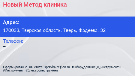 Новый Метод, клиника по адресу 170033, Тверская область, Тверь, Фадеева, 32 в дальнейшем Организация, размещена в следующих категориях: