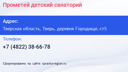Прометей, детский санаторий по адресу Тверская область, Тверь, деревня Городище, ст5 в дальнейшем Организация, размещена в следующих категориях: