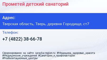 Прометей, детский санаторий по адресу Тверская область, Тверь, деревня Городище, ст7 в дальнейшем Организация, размещена в следующих категориях:
