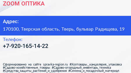 ZOOM ОПТИКА по адресу 170100, Тверская область, Тверь, бульвар Радищева, 19 в дальнейшем Организация, размещена в следующих категориях: