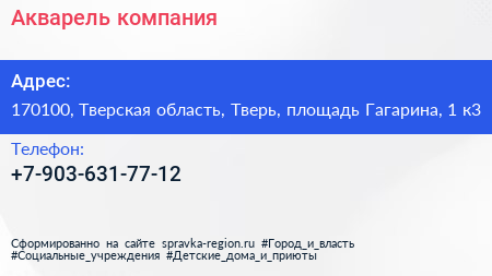 Акварель, компания по адресу 170100, Тверская область, Тверь, площадь Гагарина, 1 к3 в дальнейшем Организация, размещена в следующих категориях:
