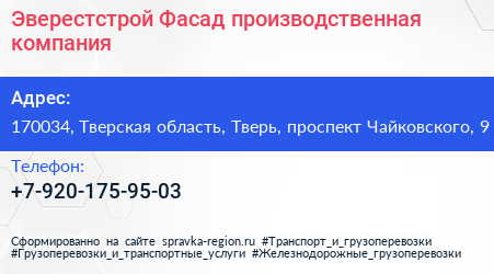 Эверестстрой-Фасад, производственная компания по адресу 170034, Тверская область, Тверь, проспект Чайковского, 9 в дальнейшем Организация, размещена в следующих категориях: