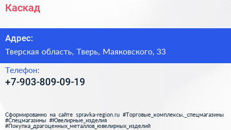 Каскад по адресу Тверская область, Тверь, Маяковского, 33 в дальнейшем Организация, размещена в следующих категориях: