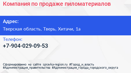Компания по продаже пиломатериалов по адресу Тверская область, Тверь, Хитачи, 1а в дальнейшем Организация, размещена в следующих категориях: