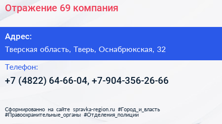 Отражение 69, компания по адресу Тверская область, Тверь, Оснабрюкская, 32 в дальнейшем Организация, размещена в следующих категориях: