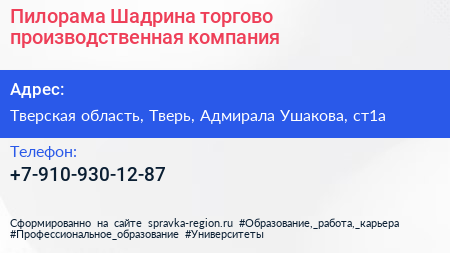 Пилорама Шадрина, торгово-производственная компания по адресу Тверская область, Тверь, Адмирала Ушакова, ст1а в дальнейшем Организация, размещена в следующих категориях: