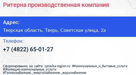 Ритерна, производственная компания по адресу Тверская область, Тверь, Советская улица, 2а в дальнейшем Организация, размещена в следующих категориях: