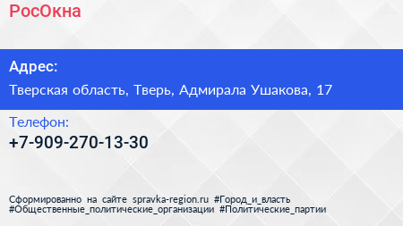 РосОкна по адресу Тверская область, Тверь, Адмирала Ушакова, 17 в дальнейшем Организация, размещена в следующих категориях: