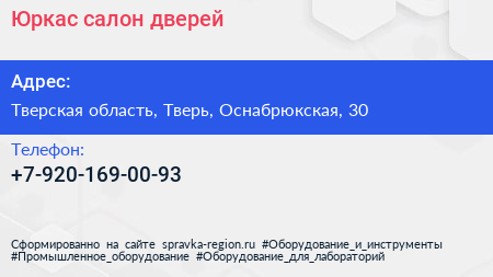 Юркас, салон дверей по адресу Тверская область, Тверь, Оснабрюкская, 30 в дальнейшем Организация, размещена в следующих категориях: