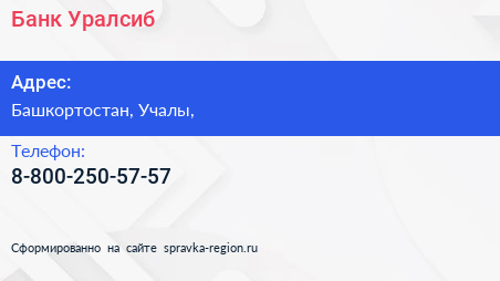 Банк Уралсиб по адресу Башкортостан, Учалы, в дальнейшем Организация, размещена в следующих категориях: