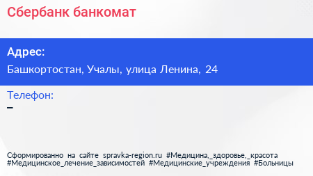 Сбербанк, банкомат по адресу Башкортостан, Учалы, улица Ленина, 24 в дальнейшем Организация, размещена в следующих категориях: