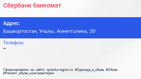 Сбербанк, банкомат по адресу Башкортостан, Учалы, Ахметгалина, 20 в дальнейшем Организация, размещена в следующих категориях: