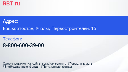 RBT.ru по адресу Башкортостан, Учалы, Первостроителей, 15 в дальнейшем Организация, размещена в следующих категориях: