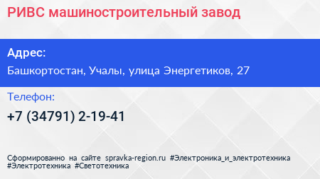 РИВС, машиностроительный завод по адресу Башкортостан, Учалы, улица Энергетиков, 27 в дальнейшем Организация, размещена в следующих категориях: