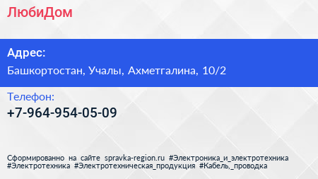 ЛюбиДом по адресу Башкортостан, Учалы, Ахметгалина, 10/2 в дальнейшем Организация, размещена в следующих категориях: