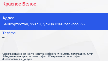Красное & Белое по адресу Башкортостан, Учалы, улица Маяковского, 65 в дальнейшем Организация, размещена в следующих категориях: