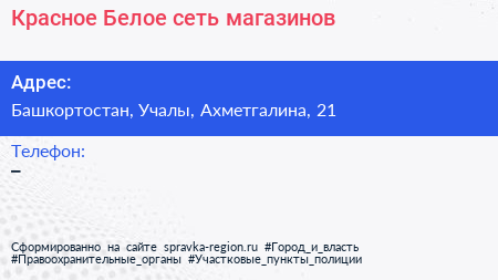 Красное & Белое, сеть магазинов по адресу Башкортостан, Учалы, Ахметгалина, 21 в дальнейшем Организация, размещена в следующих категориях: