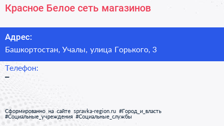 Красное & Белое, сеть магазинов по адресу Башкортостан, Учалы, улица Горького, 3 в дальнейшем Организация, размещена в следующих категориях: