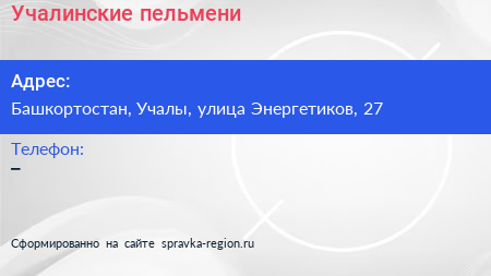Учалинские пельмени по адресу Башкортостан, Учалы, улица Энергетиков, 27 в дальнейшем Организация, размещена в следующих категориях: