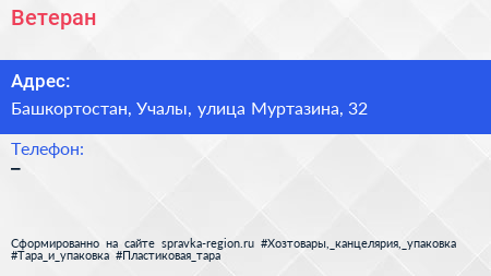 Ветеран по адресу Башкортостан, Учалы, улица Муртазина, 32 в дальнейшем Организация, размещена в следующих категориях:
