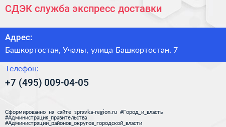 СДЭК, служба экспресс-доставки по адресу Башкортостан, Учалы, улица Башкортостан, 7 в дальнейшем Организация, размещена в следующих категориях: