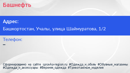 Башнефть по адресу Башкортостан, Учалы, улица Шаймуратова, 1/2 в дальнейшем Организация, размещена в следующих категориях: