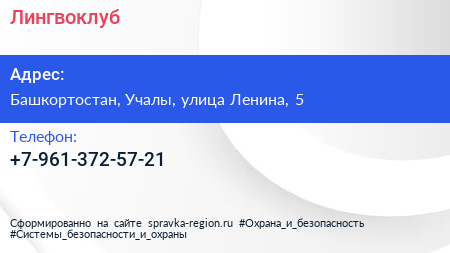 Лингвоклуб по адресу Башкортостан, Учалы, улица Ленина, 5 в дальнейшем Организация, размещена в следующих категориях: