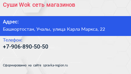 Суши Wok, сеть магазинов по адресу Башкортостан, Учалы, улица Карла Маркса, 22 в дальнейшем Организация, размещена в следующих категориях: