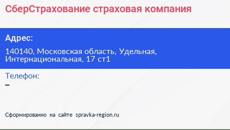 СберСтрахование, страховая компания по адресу 140140, Московская область, Удельная, Интернациональная, 17 ст1 в дальнейшем Организация, размещена в следующих категориях: