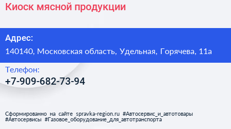 Киоск мясной продукции по адресу 140140, Московская область, Удельная, Горячева, 11а в дальнейшем Организация, размещена в следующих категориях: