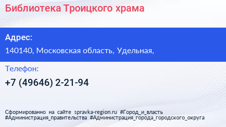 Библиотека Троицкого храма по адресу 140140, Московская область, Удельная, в дальнейшем Организация, размещена в следующих категориях: