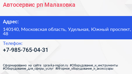 Автосервис, рп. Малаховка по адресу 140140, Московская область, Удельная, Южный проспект, 48 в дальнейшем Организация, размещена в следующих категориях: