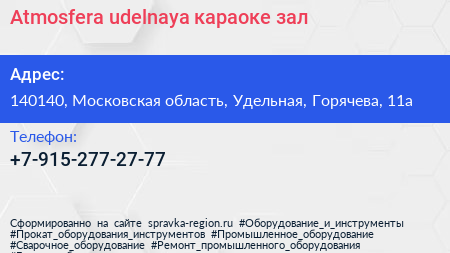 Atmosfera udelnaya, караоке-зал по адресу 140140, Московская область, Удельная, Горячева, 11а в дальнейшем Организация, размещена в следующих категориях: