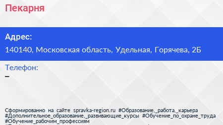 Пекарня по адресу 140140, Московская область, Удельная, Горячева, 2Б в дальнейшем Организация, размещена в следующих категориях: