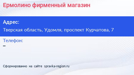 Ермолино, фирменный магазин по адресу Тверская область, Удомля, проспект Курчатова, 7 в дальнейшем Организация, размещена в следующих категориях: