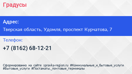 Градусы по адресу Тверская область, Удомля, проспект Курчатова, 7 в дальнейшем Организация, размещена в следующих категориях: