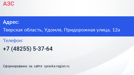 АЗС по адресу Тверская область, Удомля, Придорожная улица, 12а в дальнейшем Организация, размещена в следующих категориях: