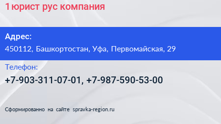 1-юрист.рус, компания по адресу 450112, Башкортостан, Уфа, Первомайская, 29 в дальнейшем Организация, размещена в следующих категориях: