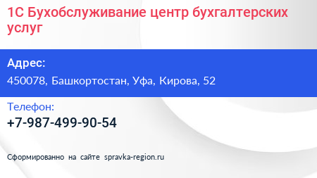 1С: Бухобслуживание, центр бухгалтерских услуг по адресу 450078, Башкортостан, Уфа, Кирова, 52 в дальнейшем Организация, размещена в следующих категориях: