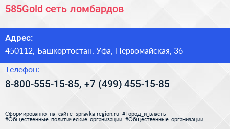 585Gold, сеть ломбардов по адресу 450112, Башкортостан, Уфа, Первомайская, 36 в дальнейшем Организация, размещена в следующих категориях: